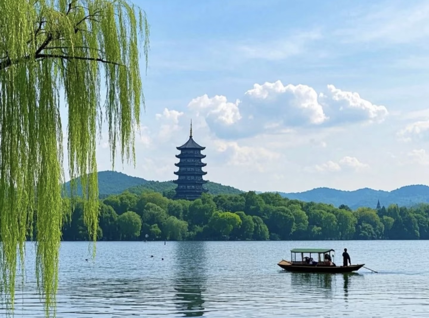 + Quý khách ngồi thuyền thưởng ngoạn khung cảnh thơ mộng của Tây Hồ - cảnh quan văn hóa nổi tiếng đã được UNESCO công nhận là di sản văn hóa thế giới năm 2011. Tây Hồ – được xem là đẹp và nên thơ nhất trong hơn 36 hồ có cùng tên ở Trung Quốc, nhìn ngắm Quả sơn, Đoạn kiều, Trường kiều, Tô Đê Bạch Đê, Tam Đàn Ấn Nguyệt và Hoa Cảng Quan Ngư (bên ngoài) gắn liền với những truyền thuyết về Lương Sơn Bá – Chúc Anh Đài, nhà thơ Lý Bạch, Thanh xà – Bạch xà. Tây Hồ được cho là sự hóa thân của Tây Thi, một trong Tứ đại mỹ nhân Trung Hoa thời Trung Quốc cổ đại. Kể từ thời cổ đại, Tây Hồ đã gắn liền với nhiều nhà thơ lãng mạn, nhà triết học thâm thúy, các vị anh hùng dân tộc.