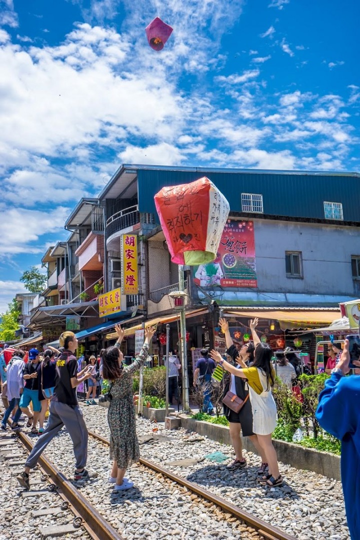 Làng cổ Thập Phần (Shifen Old Street) nơi Quý khách cũng có thể tự tay viết những lời cầu nguyện lên đèn lồng và đốt nến để thả đèn lên trời, cầu may mắn, bình an.